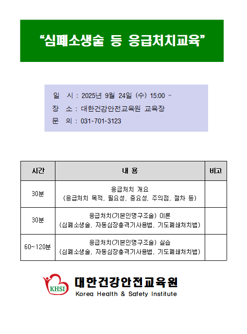 2025³â 9¿ù, ½ÉÆó¼Ò»ý¼ú(cpr) µî ÀÀ±Þóġ±³À° ¾È³»